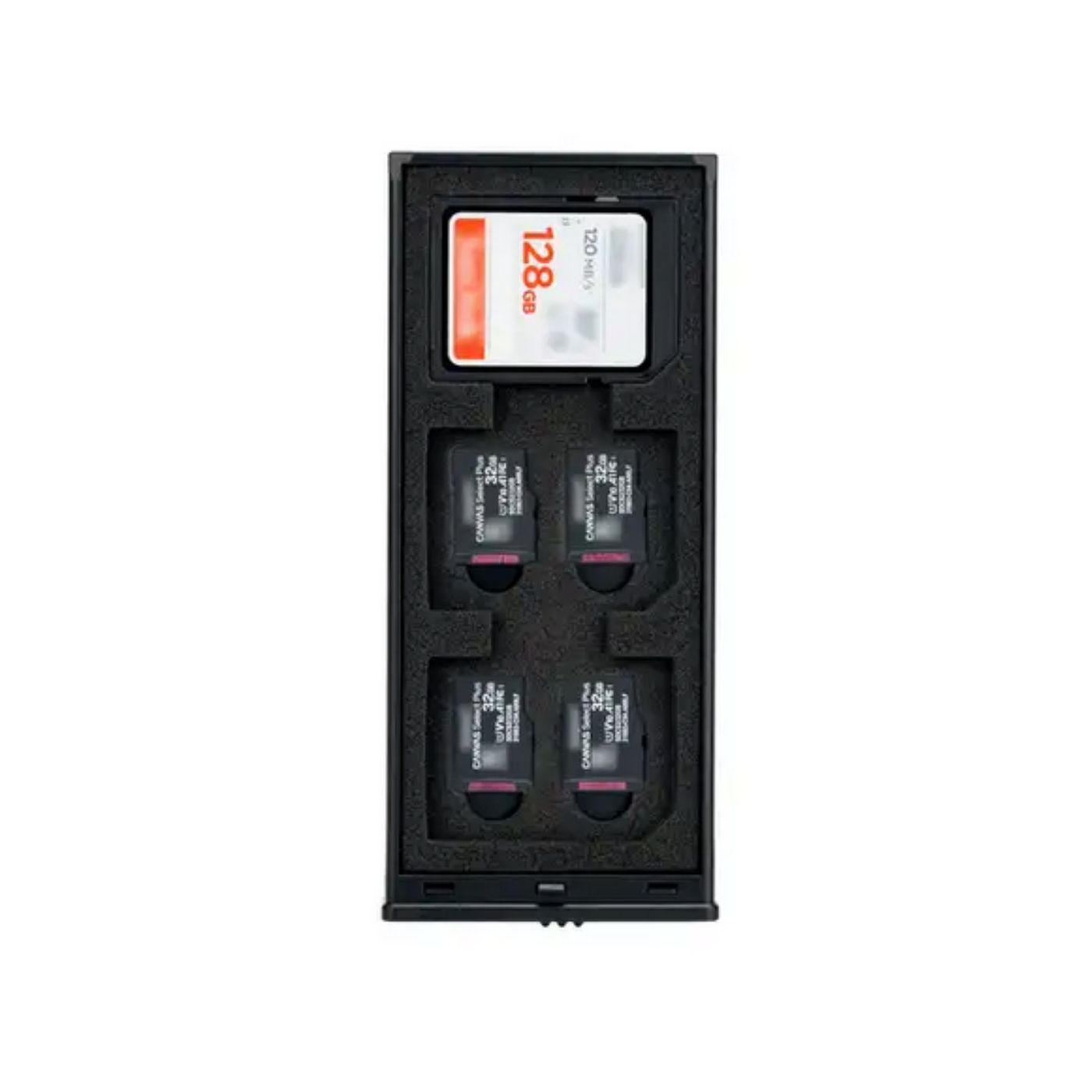 Avand o marime de aproximativ 10cm (107mm), acest produs reprezinta accesoriul video ideal pentru persoanele care calatoresc destul de des si folosesc mai multe carduri de memorie cu ei. In ciuda marimii sale reduse, acest portofel pentru carduri foto poate stoca pana la 18 bucati: 6 SD si 12 microSD.