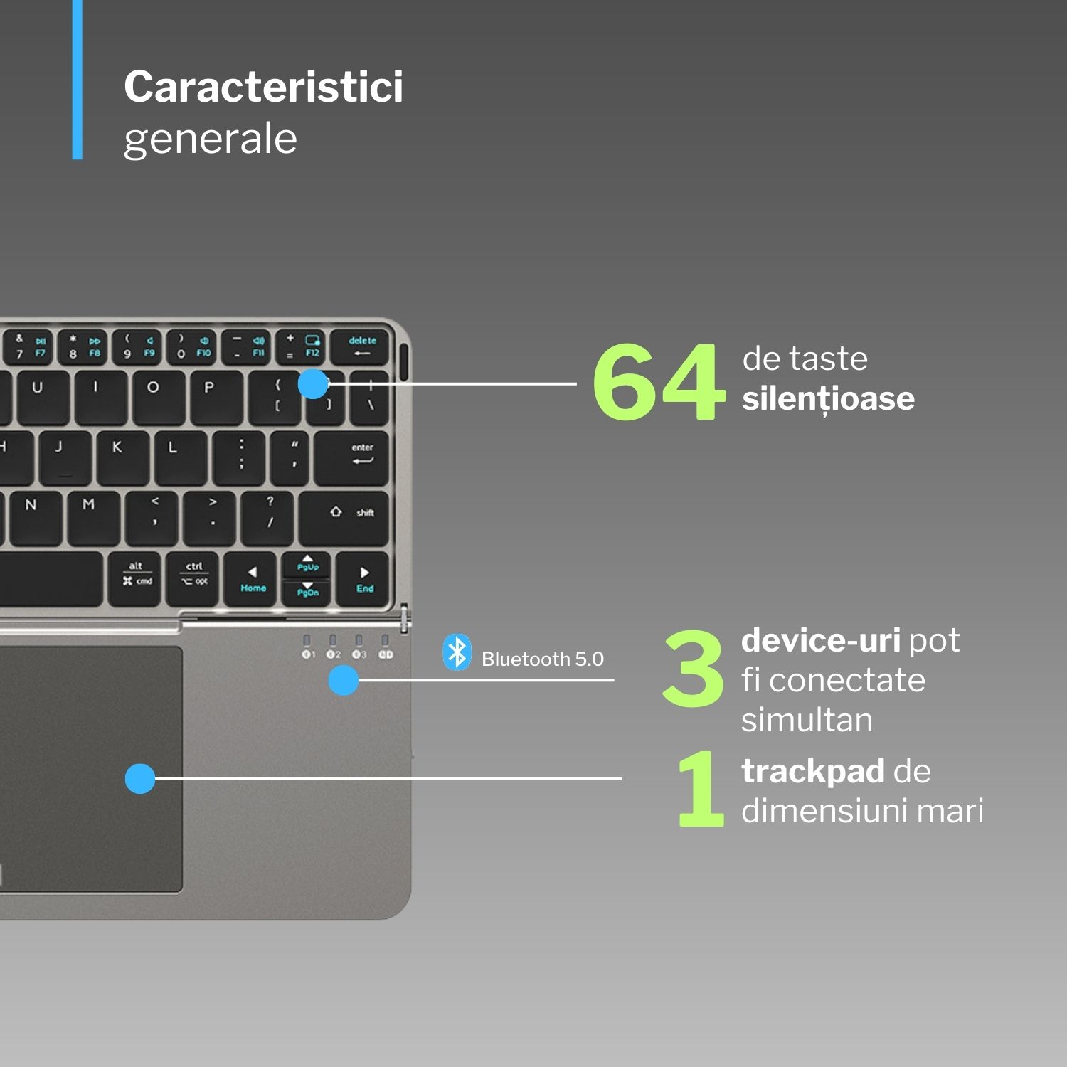 - dimensiune tastatură: 251 x 182 x 8.5 mm