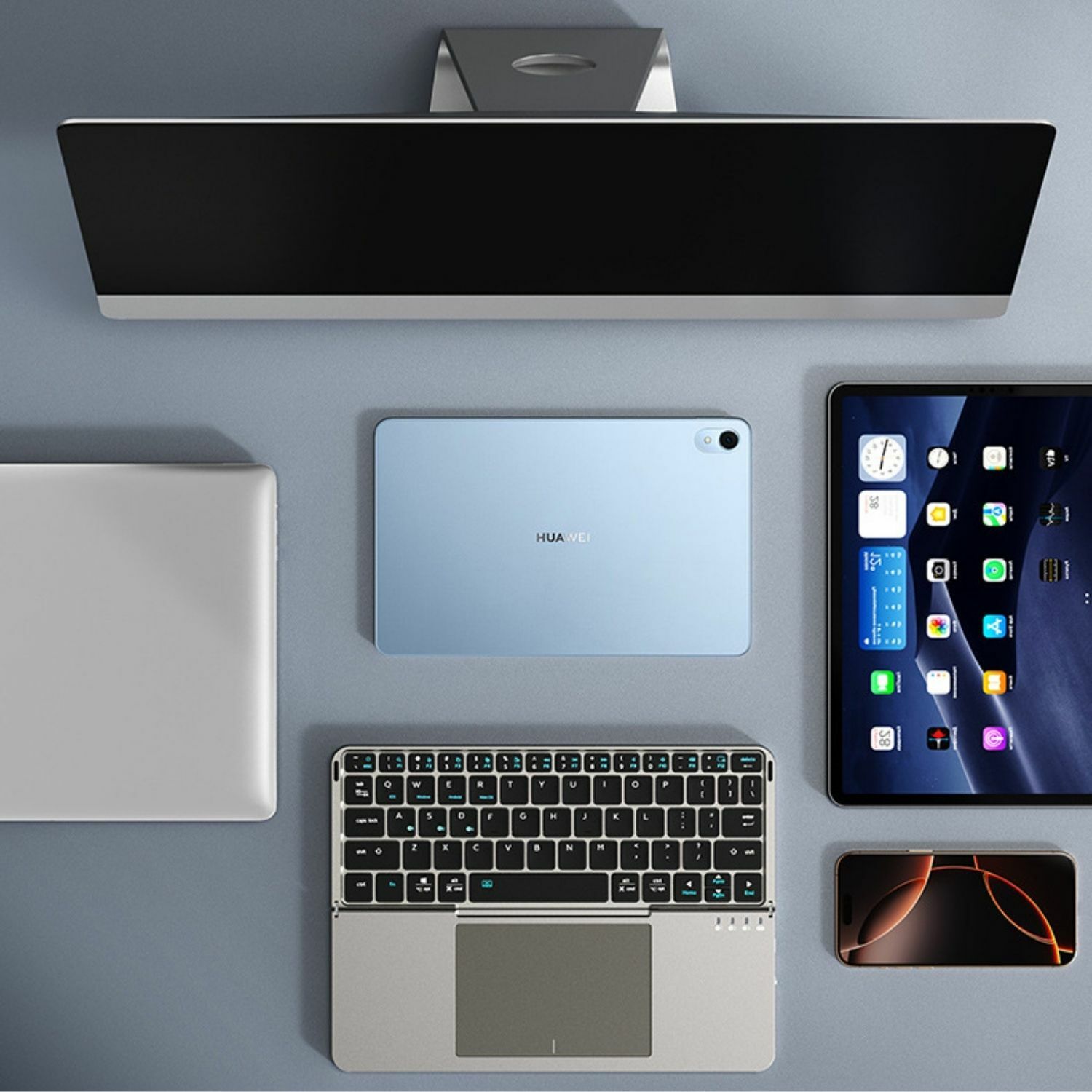 Tastatura se pliază compact pentru a putea fi transportată cu ușurintă in geantă sau rucsac. Husa pliabilă inclusă (dar detasșabilă) protejează dispozitivul și oferă stabilitate in timp.