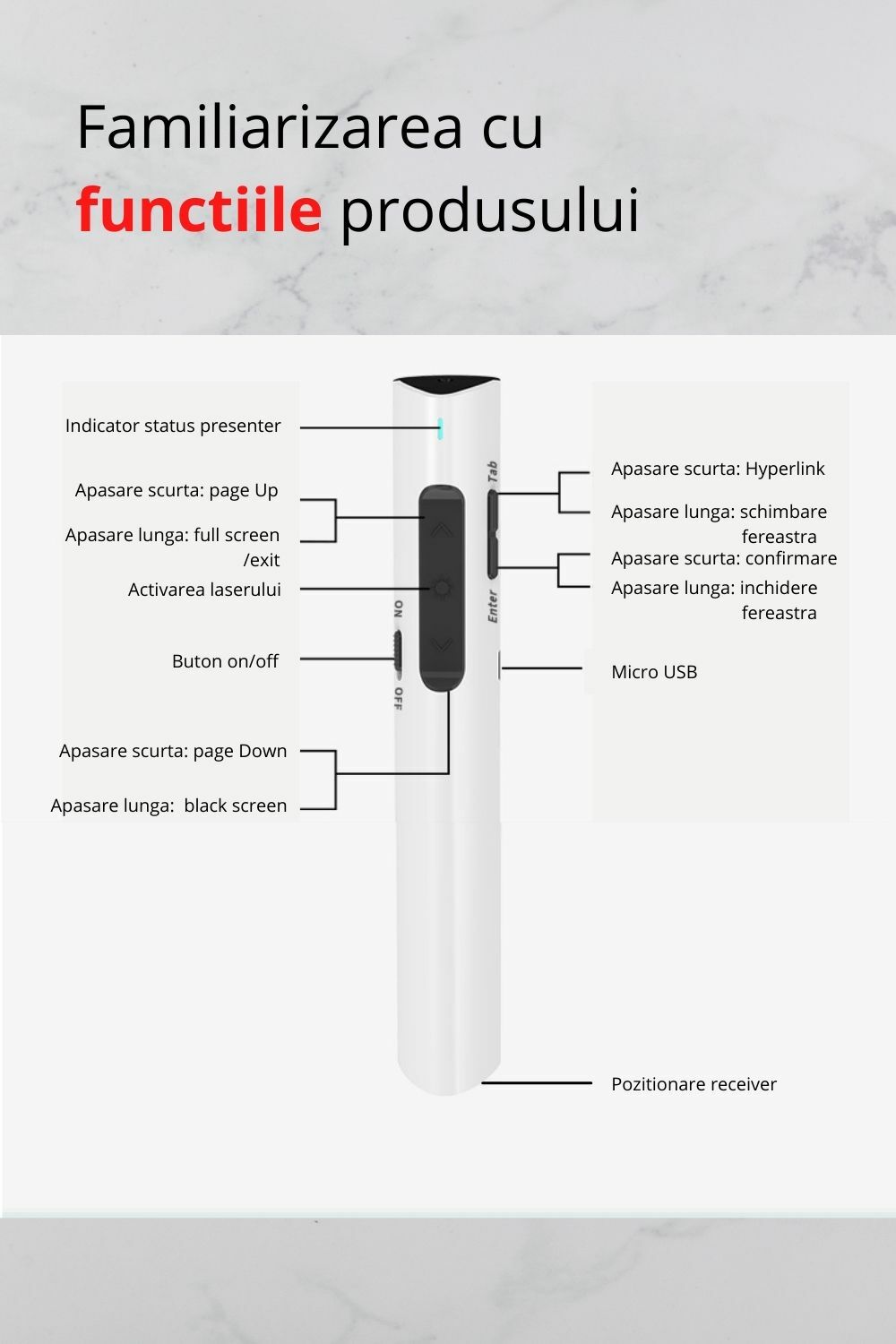 Acest produs foloseste techologia Wireless (2.4 Ghz ) si a fost special conceput pentru prezentari. Este pretabil pentru institutii, private sau guvernamentale, pentru corporatii cat si pentru gradinite sau scoli.
