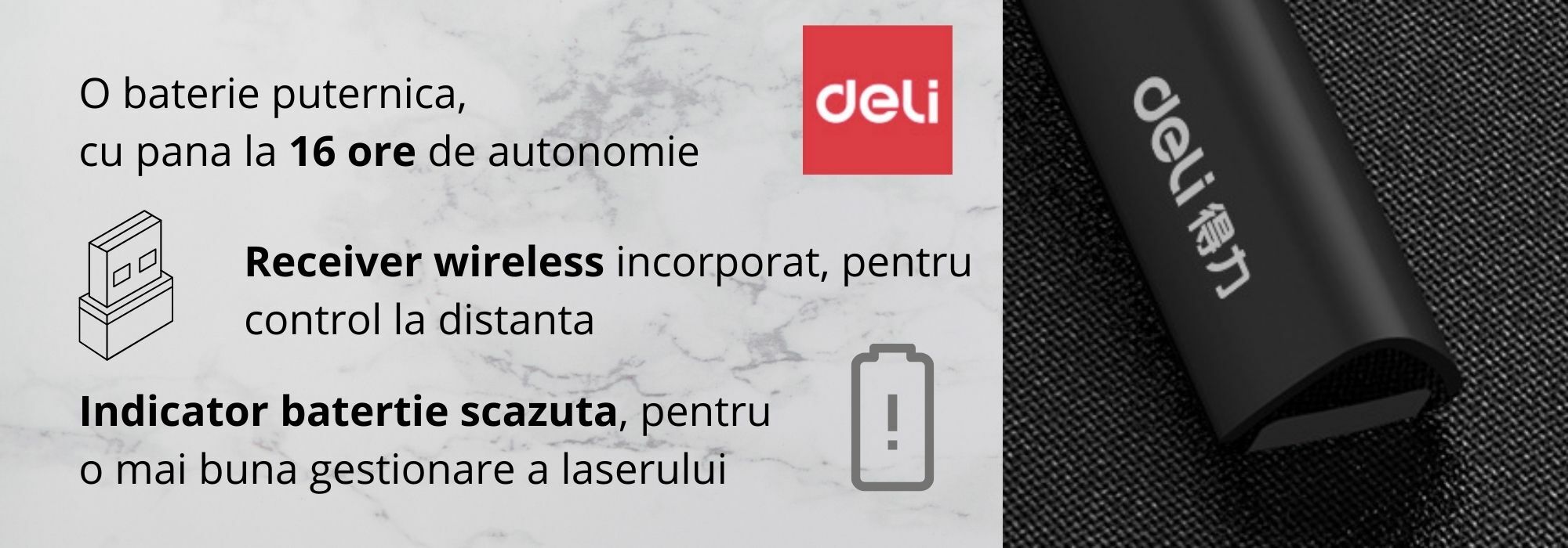 Indicator laser pentru prezentare sau predare DELI-2801, 100m, 2.4 Ghz, USB, 360mAh, Win/Android/Mac-OS, laser rosu, Negru